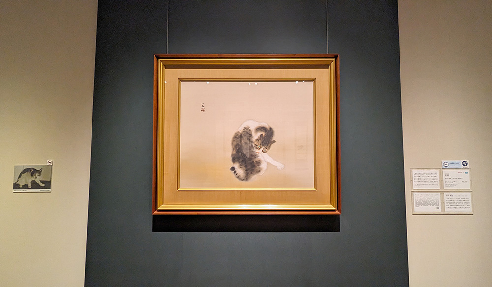 2024年5月に〈山種美術館〉で開催された『犬派?猫派?』の会場にて。こちらの作品は、竹内栖鳳の《班猫》。