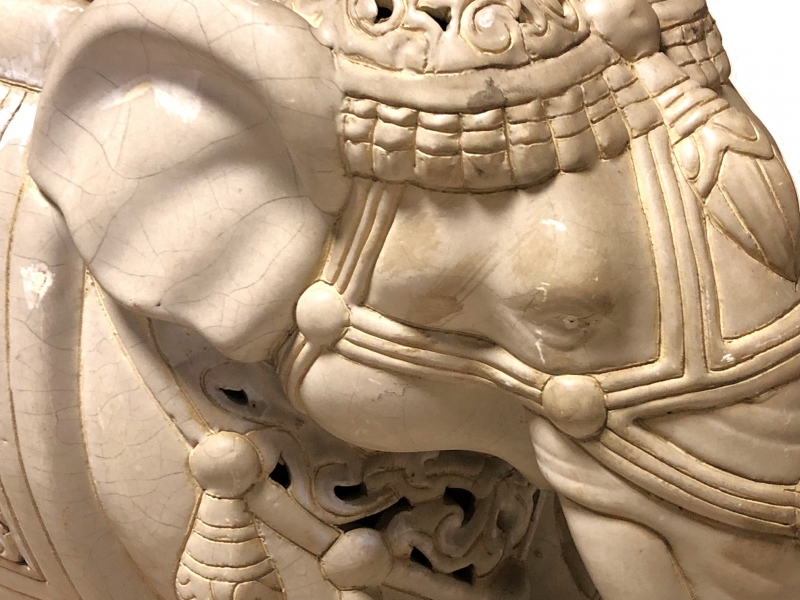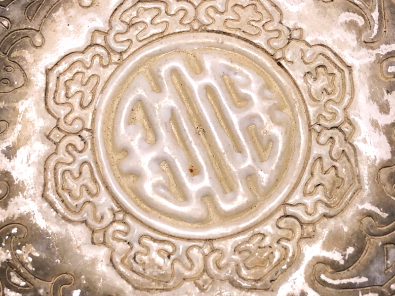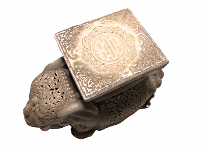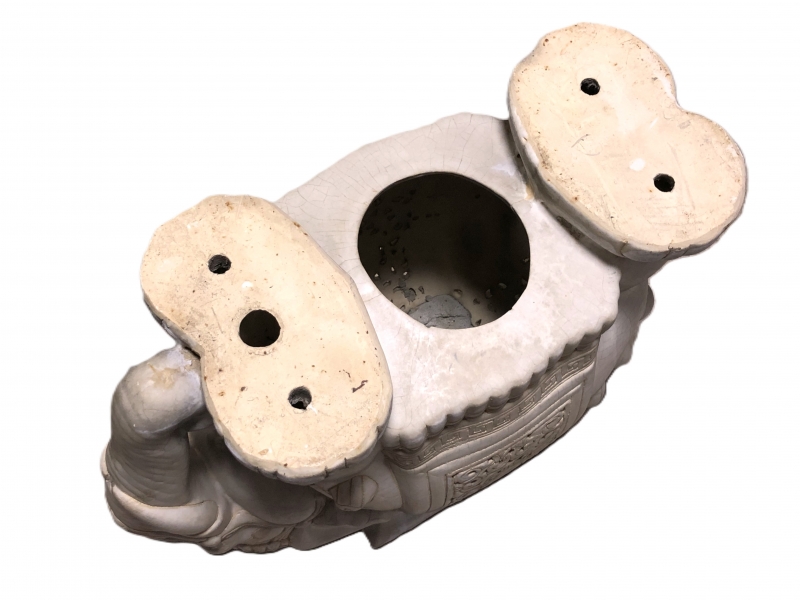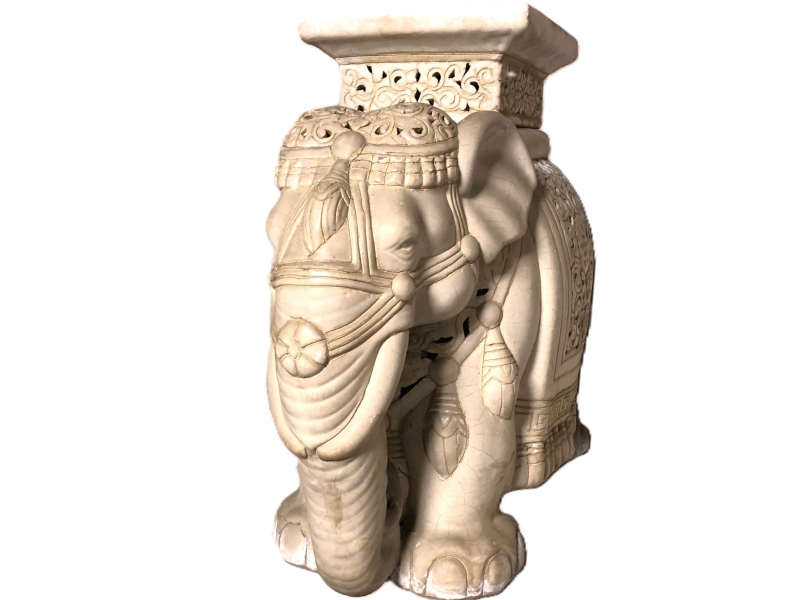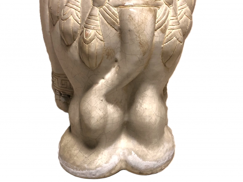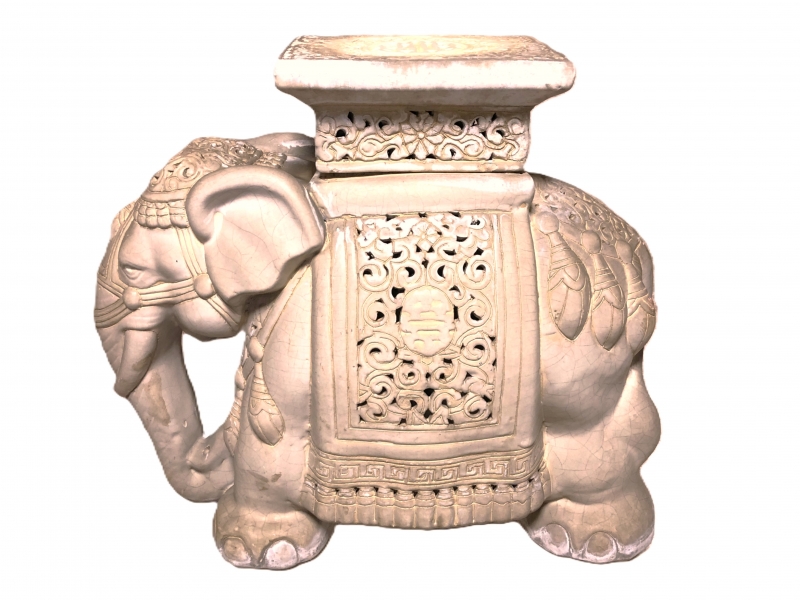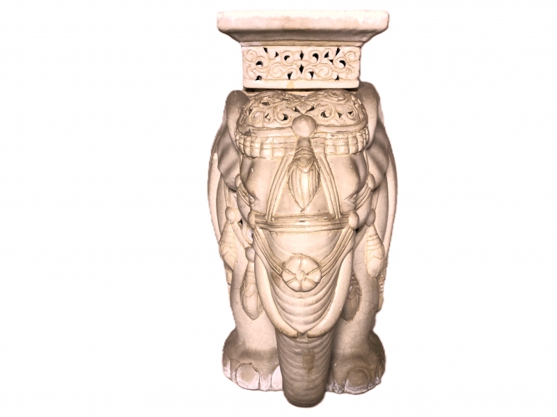 【 白釉象花台 】 アンティーク 吉祥蝙蝠文