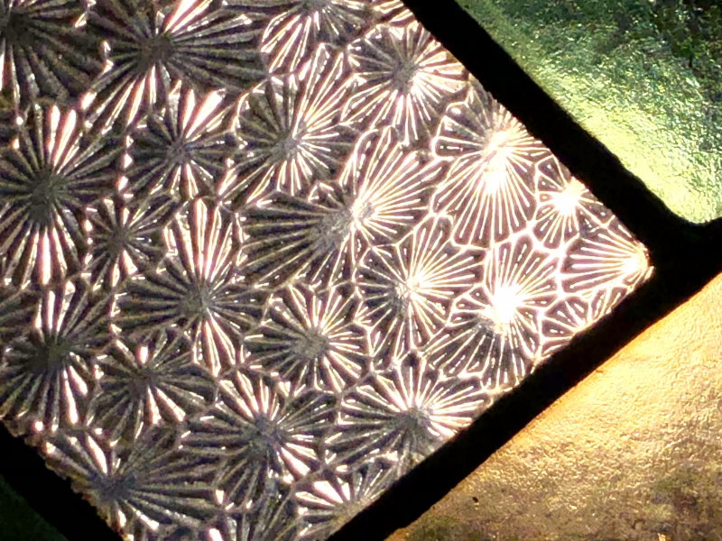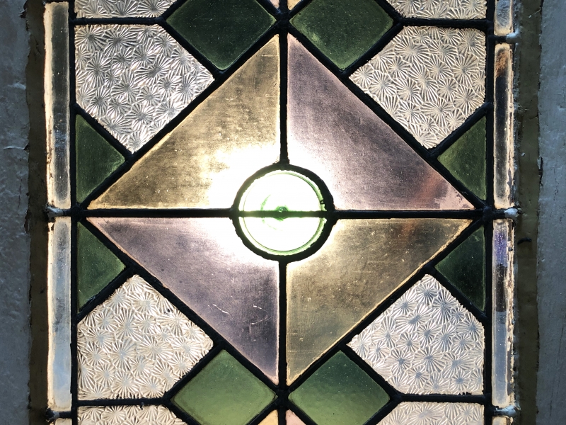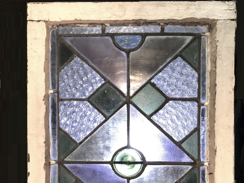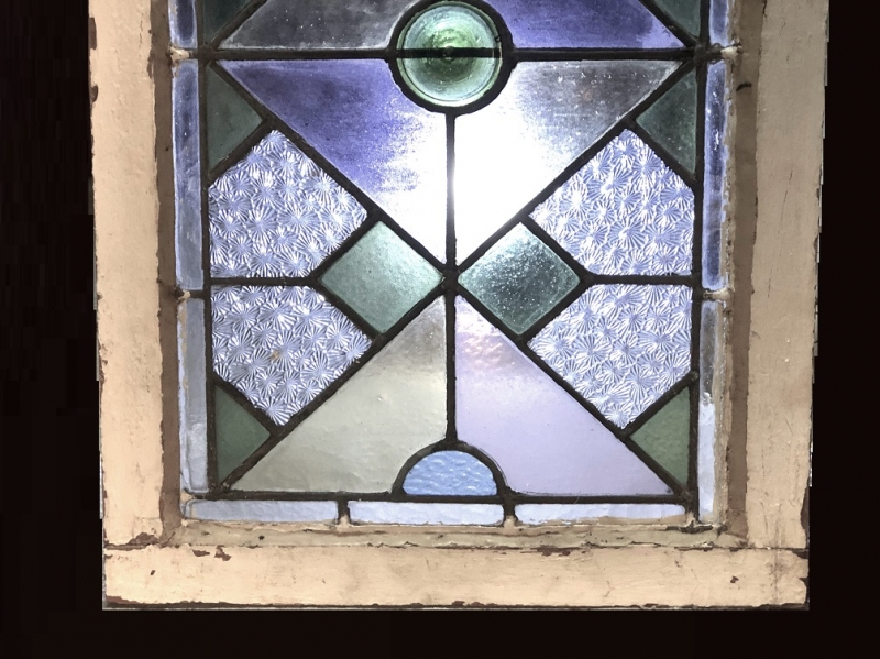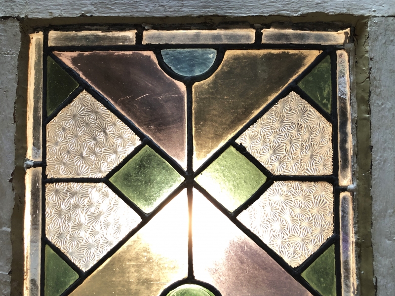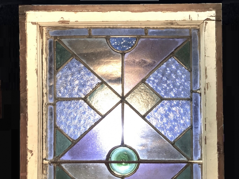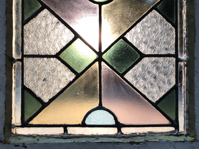 【 ステンドグラス窓 71.7cm 】 菊花尽し彫りアールデコ 大正モダン