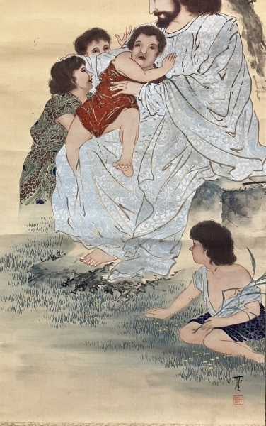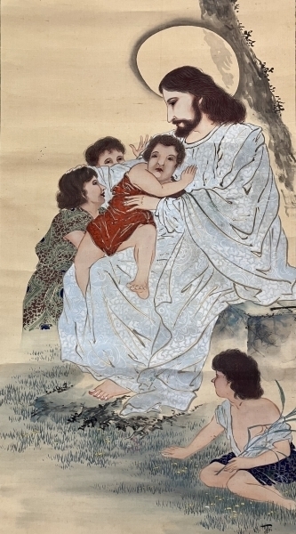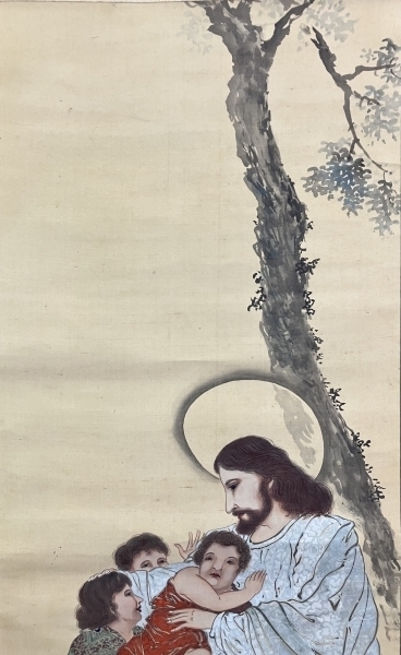 キリスト 絹本 掛軸(Christian cristiano catholic católico Bible)