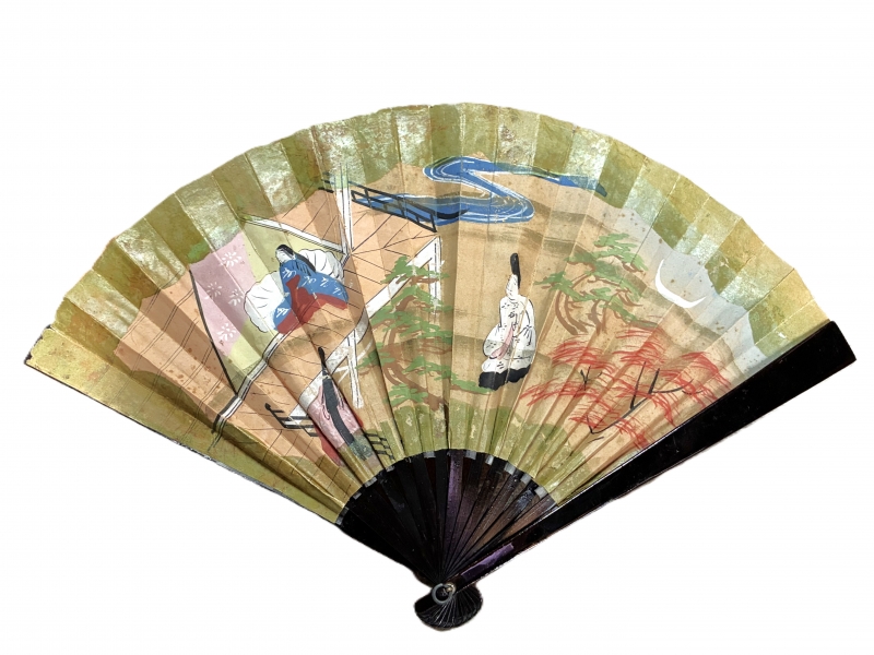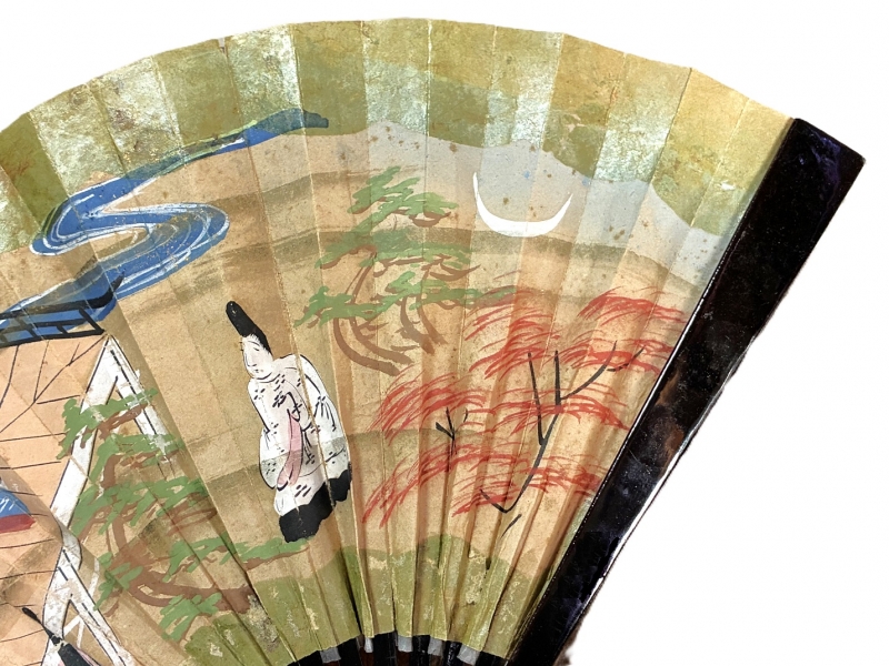 【 鉄扇 骨董 】 肉筆大和絵 武家 江戸~大正時代