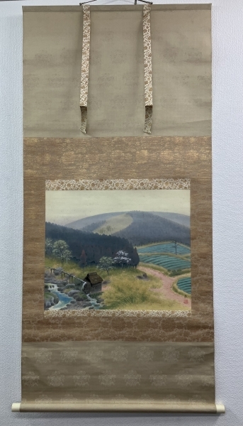 山下巌「春閑」日展特選作品 絹本 掛軸 共箱
