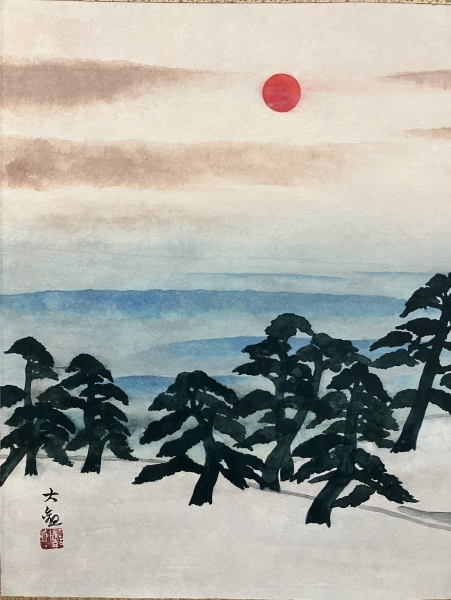 横山大観 紙本 掛軸 太巻 共箱 2重箱(送料/1,000円)Taikan Yokoyama