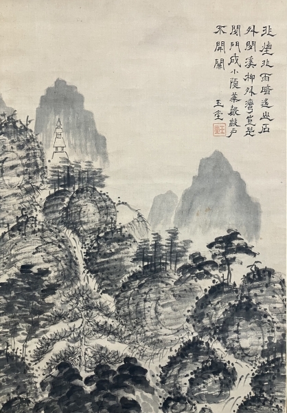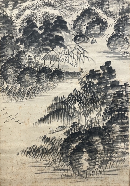 浦上玉堂【山水画】絹本 掛軸 識箱(日本/江戸/中国)Edo/Gyokudo Uragami