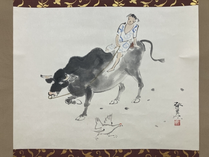 川島登美次【牧童】紙本 掛軸 共箱 Tomiji Kawashima
