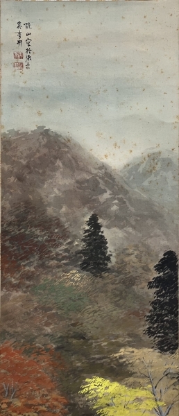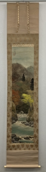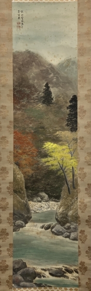 水田硯山【秋景山水図】絹本 掛軸 共箱(水田竹圃)Kenzan Mizuta
