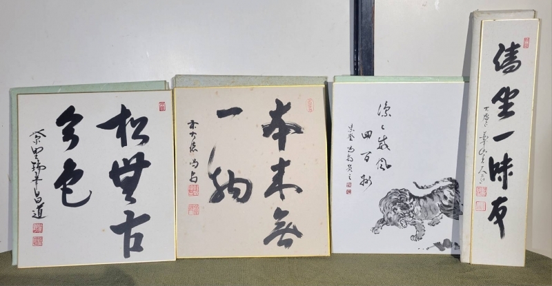 大徳寺老師の書 色紙3枚 短冊1枚 肉筆、紙本