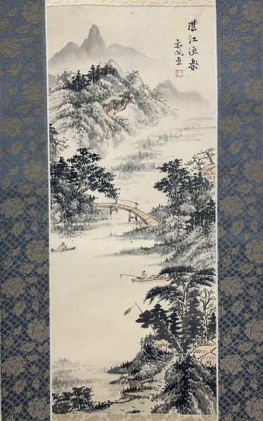 伊孚九(亦成堂) 山水図 絹本 掛軸 小幅(検索/中国・池大雅・文人画・南宗画)