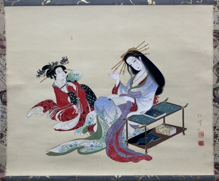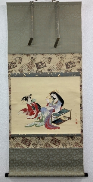 上村松園(鳥文斎栄之の模写)【遊女】絹本 掛軸 共箱(美人画 浮世絵)Ukiyoe Shyoen