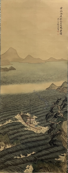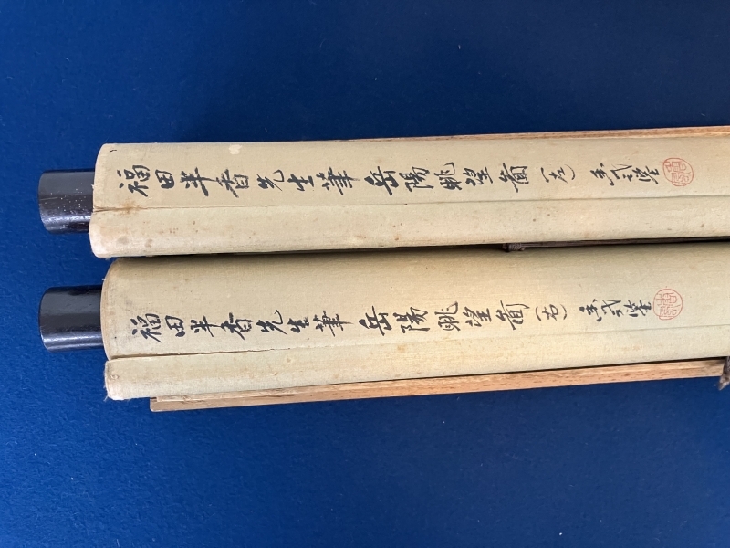 福田半香 山水図 絹本 双幅 掛軸 識箱(渡辺崋山/崋山十哲)Hankou Fukuda