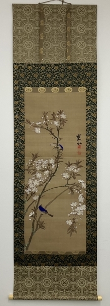 碧水 花鳥図 絹本 掛軸【浮世絵師:北尾重政】Ukiyoe Shigemasa Kitao