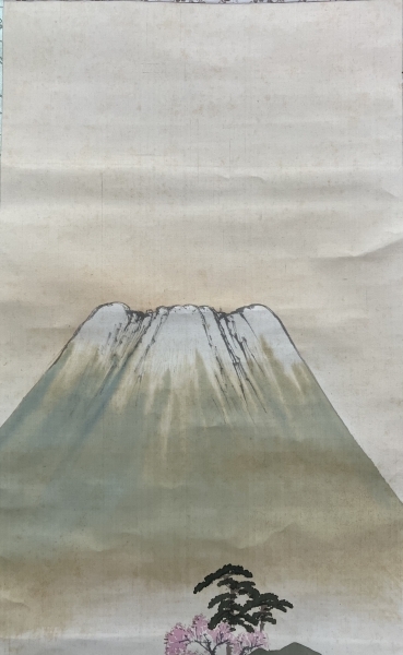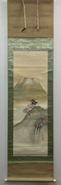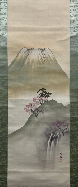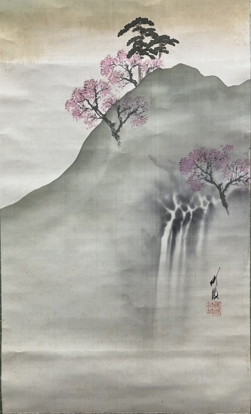 尾竹竹坡【春景山水】絹本 掛軸 共箱(Otake Chikuha)