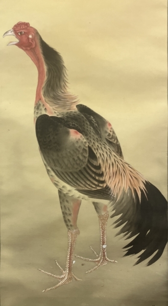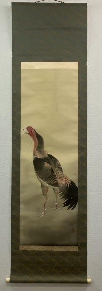 山本星海「勝関」(軍鶏図)絹本 掛軸 共箱