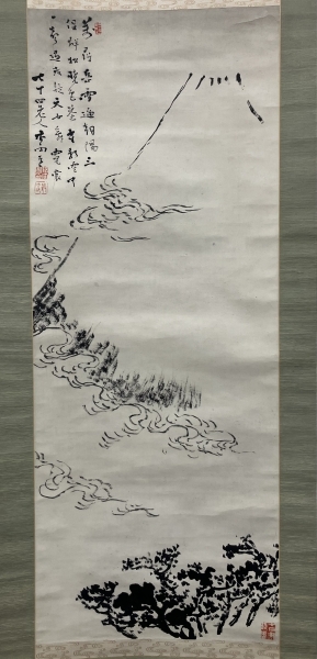 在銘 水墨富士 富士山図 紙本 掛軸