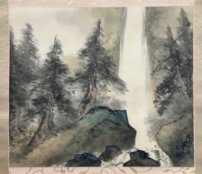 井上石邨【風景画】絹本 掛軸 共箱(京都国立近代美術館)Sekison Inoue